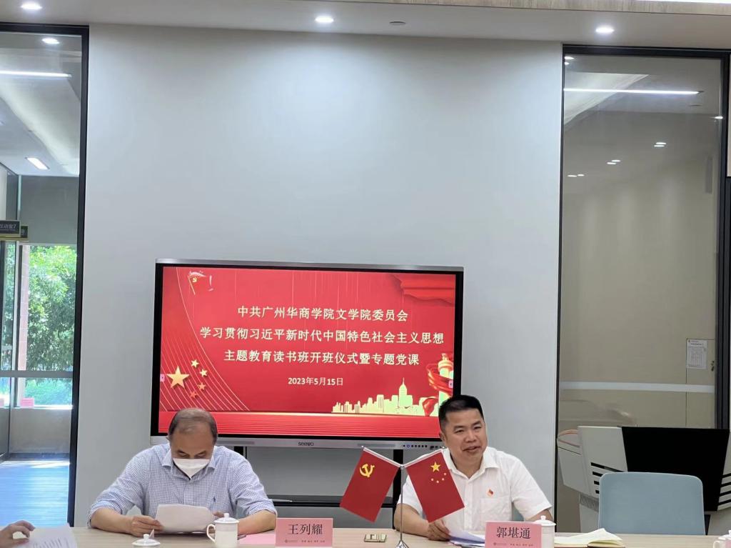 5月15日,文学院党委学习贯彻习近平新时代中国特色社会主义思想主题教育读书班开班仪式暨专题党课在学校图书馆教师发展中心互动5号室举行。学校副校长王列耀、学院党委副书记郭堪通、党委委员、党支部书记以及教工党员参加会议。学校副校长王列耀讲授专题党课、学院党委副书记郭堪通作开班动员讲话。学院党委委员于丹丹主持会议。