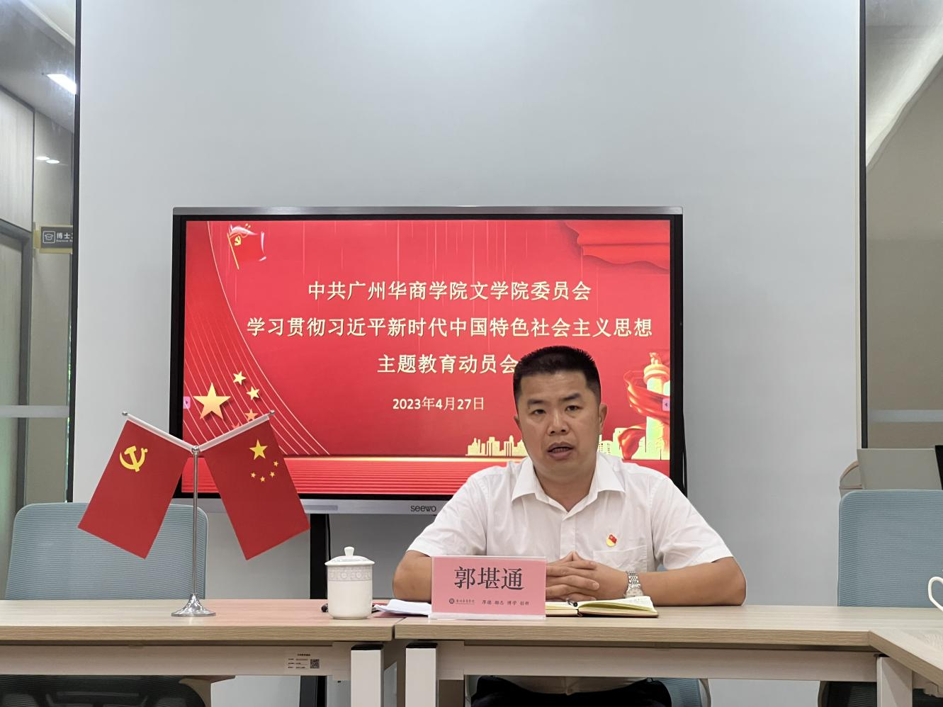 427日下午,文学院党委在图书馆教师发展中心互动5号室组织召开了学习贯彻习近平新时代中国特色社会主义思想主题教育动员大会,深入学习贯彻习近平总书记重要讲话精神,落实党中央决策部署和上级党委的工作安排,对我院党委开展主题教育进行动员部署。学院党委副书记郭堪通作主题教育动员讲话,学院党委委员、党支部书记参加会议,会议由学院党委委员于丹丹同志主持。