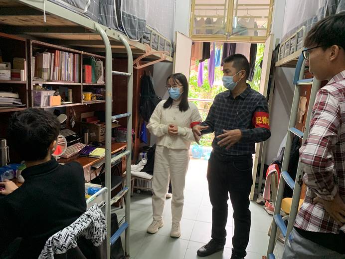 为全面贯彻落实学校关于疫情防控工作的要求和部署,进一步做好常态化疫情防控工作,深入了解我院学生宿舍学习生活状况及存在问题与困难。419日上午,学院党委副书记郭堪通、学工办副主任王桂华及专职辅导员深入学生宿舍,开展疫情防控学生宿舍检查活动。