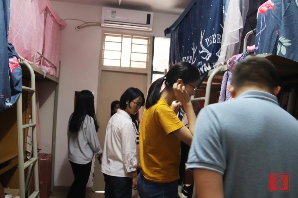 虽然天气炎热,但是老师们仍然坚持走访宿舍,相信同学们从中也能体会到老师的悉心关怀。希望同学们谨记老师的叮嘱,时刻牢记文明纪律,不要使用大功率电器,注意宿舍安全卫生。