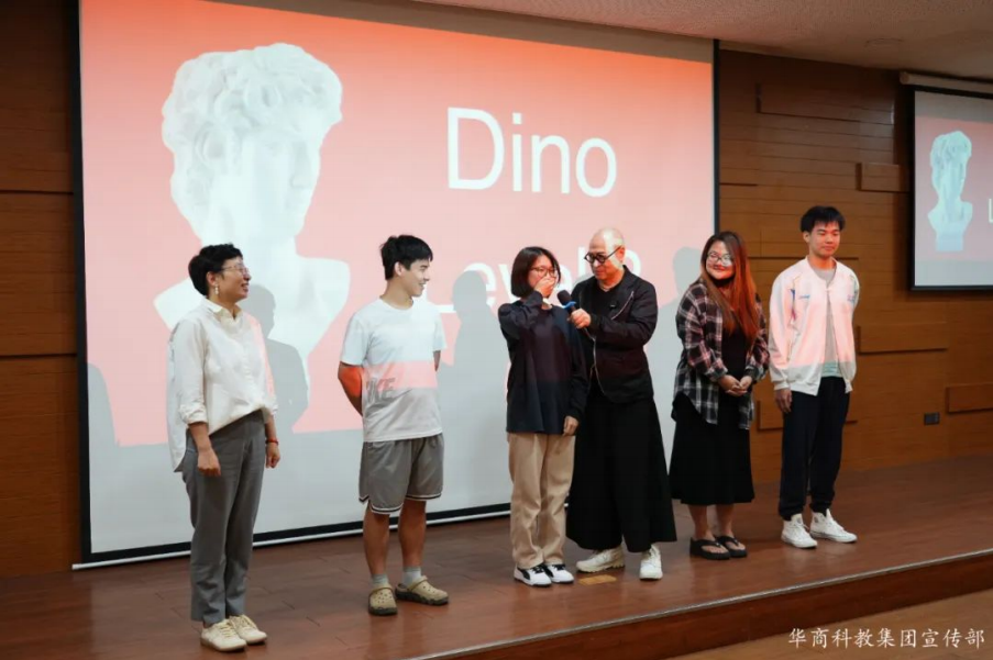 随后,詹瑞文教授向同学们讲述一个似是而非的意大利米兰拜师经历。他特别提及好玩的趣味考核--"Dino说"的游戏练习,詹教授在解析游戏内涵时强调,胜负并非核心要义,真正的精髓在于"Play"的沉浸式体验。为深化理解,他邀请华商师生登台实践这种寓教于乐的体验过程,生动诠释了"PIP"理念中关于戏剧潜能开发的深层哲学--通过游戏化的情境构建,激发参与者突破思维定势,在即兴互动中实现自我超越。