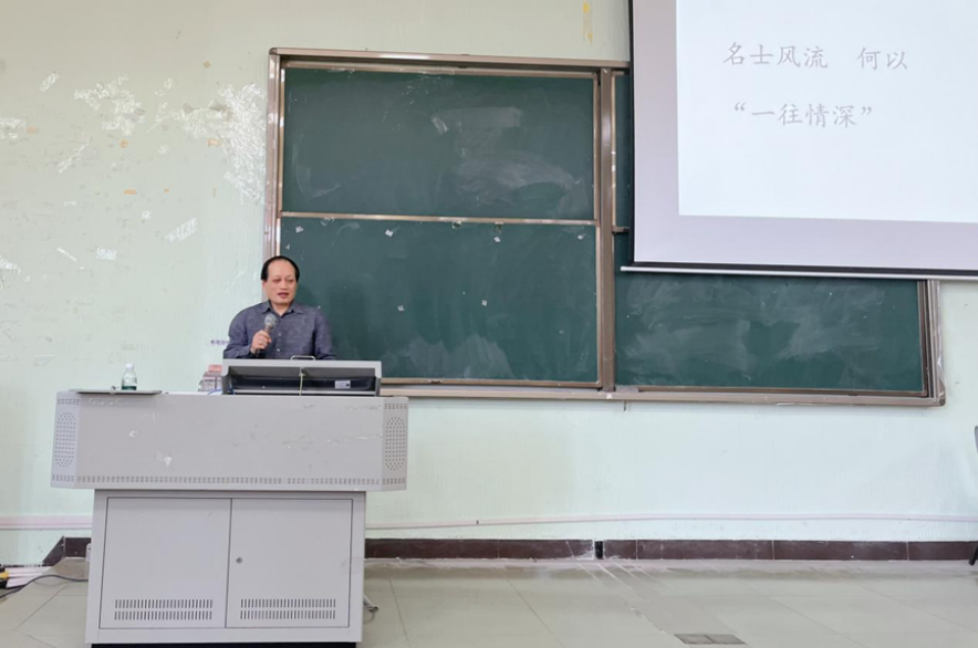 2025年4月15日下午,暨南大学文学院博士生导师徐国荣教授做客“华商文化讲堂”,带来《名士风流何以“一往情深”》之讲座。讲座由我院副院长伍世昭教授主持,文学院五十余名师生参加。
