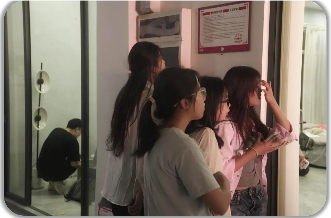 为了让学生深度融入影视制作场景,两位老师特别安排“沉浸式跟组实践”。同学们跟随剧组辗转不同场地,从布置机位时的精准定位,到协调场地时的多方沟通。在高强度的转场节奏中,切身感受影视行业分秒必争的工作特性。每一次实践都让同学们深刻体会到影视创作背后的艰辛与挑战,也对团队协作在艺术生产中的核心价值有了更具象化的认知。