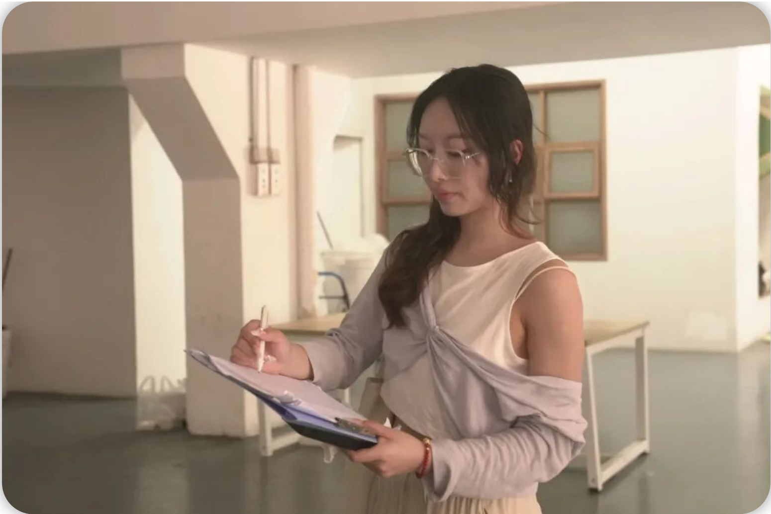 另一位刘鑫同学则承担剧组场记工作,手持场记板精准记录镜号和音轨。她手中的场记单,不仅是拍摄现场的“时间轴”,更是后期剪辑的重要参考依据。 两位同学深知,这份宝贵的实习机会凝聚着学校与老师的悉心栽培,始终以饱满的热情投入工作,在实践中打磨专业技能,期待将片场所学转化为未来创作的底气。