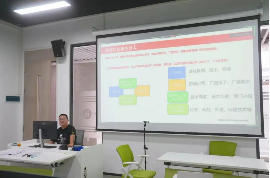 用接轨行业的方式对这次阶段性教学成果进行点评,邀请资深游戏制作人顾运涛与康照参与项目书汇报会,以行业标准对同学们的作品进行模拟实战点评。会后制作人顾运涛和康照现在对同学们分享一线行业咨询,引导同学们就游戏行业现状及未来趋势进行了深入探讨,为学生们的游戏梦想指引方向。
