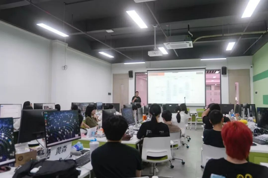 2024年11月,超火游戏学院特邀绿茵工作室的资深制作人康照和主策划强旭东为游戏策划特色班进行授课赋能。这一天同学们“哇"说了 520次,挠头 698次,没关系!趁年轻,头发还有很多可以挠!