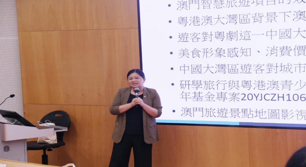 在简短的欢迎仪式后,两校老师合影留念。随后,澳门城市大学国际旅游与管理学院博士生导师高玉婷教授为参访团带来专题讲座。
