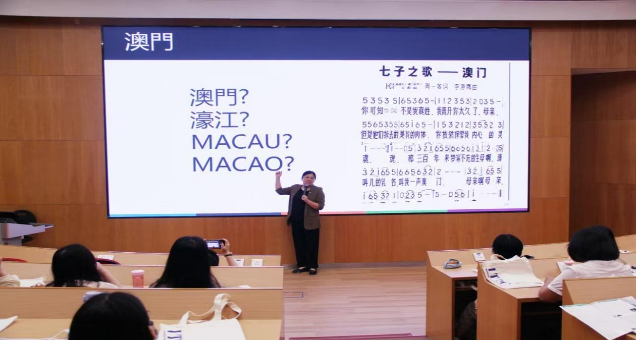 高教授的讲座从历史沿革、文化特色、教育发展三个维度展开。她详细解读了澳门从一个小渔村发展成为国际都市的历程, "澳门虽小,却是中华文化与西方文明交融的活标本。"高教授指出,"大三巴牌坊、妈阁庙等世界文化遗产,都是这种文化交融的最佳见证。"高教授以“一二三四”几个方面为大家介绍了澳门的情况,“一”是“一直增长”,从面积和人口看,都在一直增长;“二”是“二种制度”,在一国两制的框架下,澳门特别行政区是中华人民共和国不可分离的部分。“三、四”指的是“三言四语”,在澳门,粤语、普通话、葡萄牙语、英语是常用的四种语言,这些语言在不同的场合中被运用。总体来说,澳门呈现出多元文化发展的状态。此外,高教授还进一步梳理了影响澳门发展的五大重要历史事件,从历史、文化的角度清晰地呈现了澳门地发展路径。