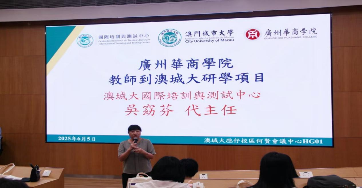 上午9点半,参访活动在澳门城市大学会议中心正式拉开帷幕。澳门城市大学国际培训与测试中心代主任吴窈芬女士首先致欢迎辞。她表示:"澳门城市大学始终秉持开放办学的理念,积极推动与粤港澳大湾区高校的交流合作。此次广州华商学院老师代表的到访,为两校未来的深度合作奠定了良好基础。"