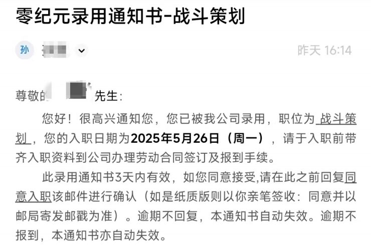 文学院21级汉语言文学的李同学,斩获要纪元战斗策划一职,也与公司协商达成转正意向。 他未来将 凭借文学素养与独特创意,为岗位注入新活力,在游戏领域继续战斗!
