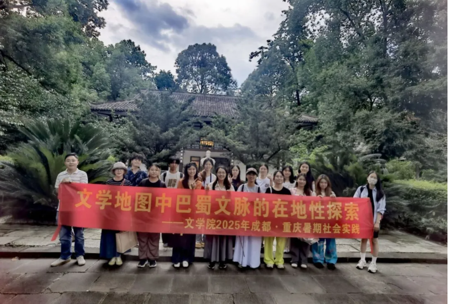 2025年8月21日至8月27日,为深化构建文学地理认知,破解书斋式文学研究的局限,解码川渝文学基因,文学院“2025年成渝双城的文学地图——巴蜀文脉的在地性探索”暑期社会实践队在文学院6名专业课教师的带领下走进成都、重庆,开展为期七天的巴蜀文化基因中现当代文学的深度探寻之旅,通过探访现当代作家故居、问访博物馆和深入社区探寻巴蜀地区丰富繁荣的文化基因,解构巴蜀文化基因对中国现当代文学的精神滋养与美学重构。精心...